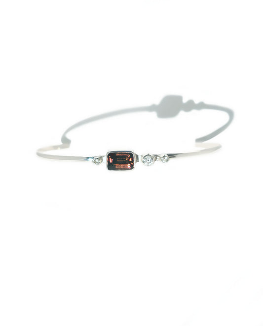 Baguette Cut Rhodolite Garnet & Diamond Cuff Bracelet