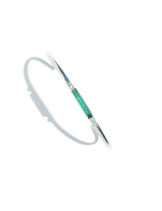 Baguette Cut Blue-Green Tourmaline & Diamond Cuff Bracelet